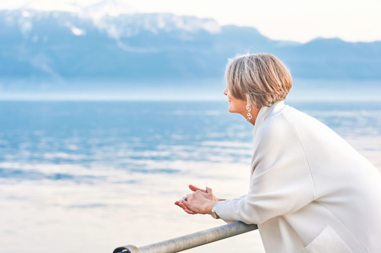 Ältere Frau blickt ruhig in die Zukunft – Finanzielle Sicherheit im Alter | Financipation Club